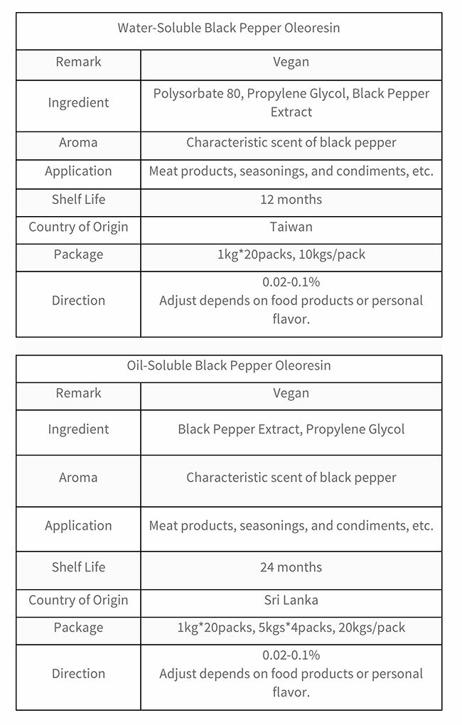 Black pepper oleoresin is extracted from select and quality black pepper and used as a food additive to add up more aroma and taste of black pepper in all kinds of food products.