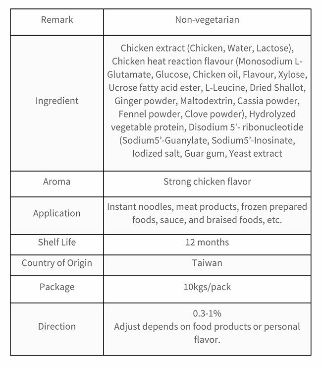 Chicken flavor enhancer is made of chicken meat. It intensifies and strong the chicken flavor of food products.