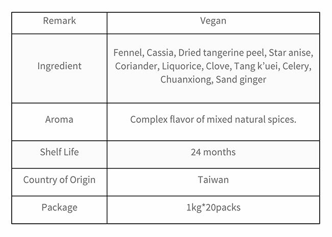 Five spice powder includes various of natural spices with Authentic flavor of Chinese culinary.