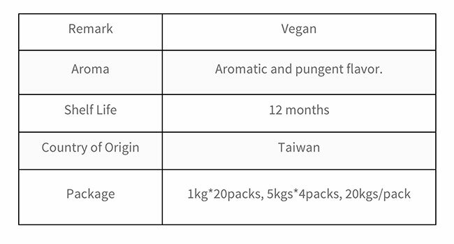 It is used as cooking enhancement to fish, meat, poultry, and vegetable, and is also a good addictive to cold dishes.