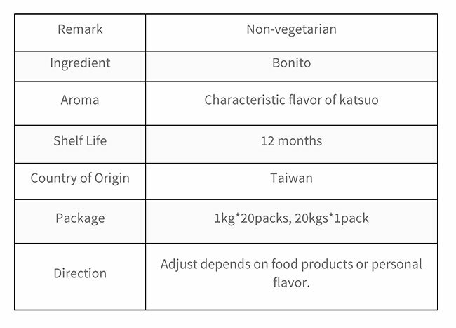 Katsuo powder is made of bonito and widely used to heighten the taste and aroma of food products more flavorful.