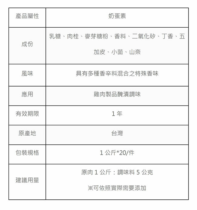 多種香辛料調配而成,混合香辛料特殊香氣,賦予食材豐富香味。