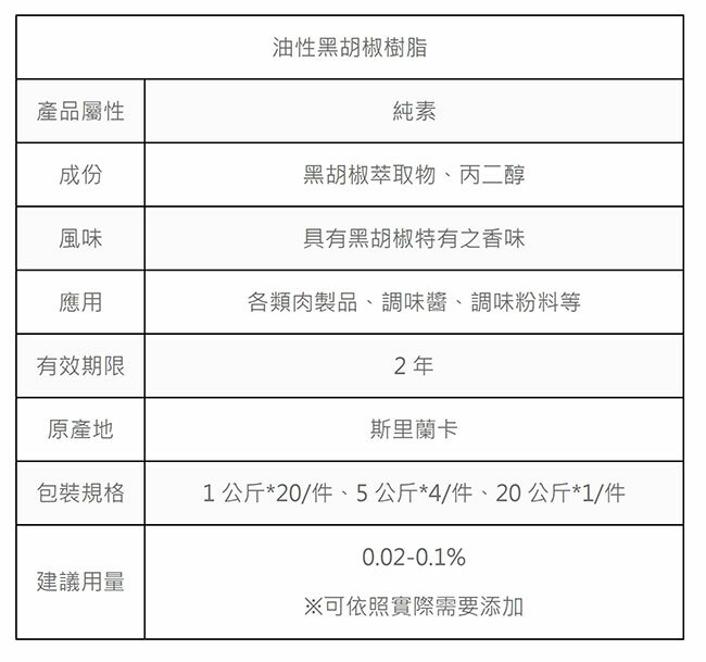 本產品選用優質胡椒粒,通過低溫溶劑提取製得,可以增加食品黑胡椒風味。