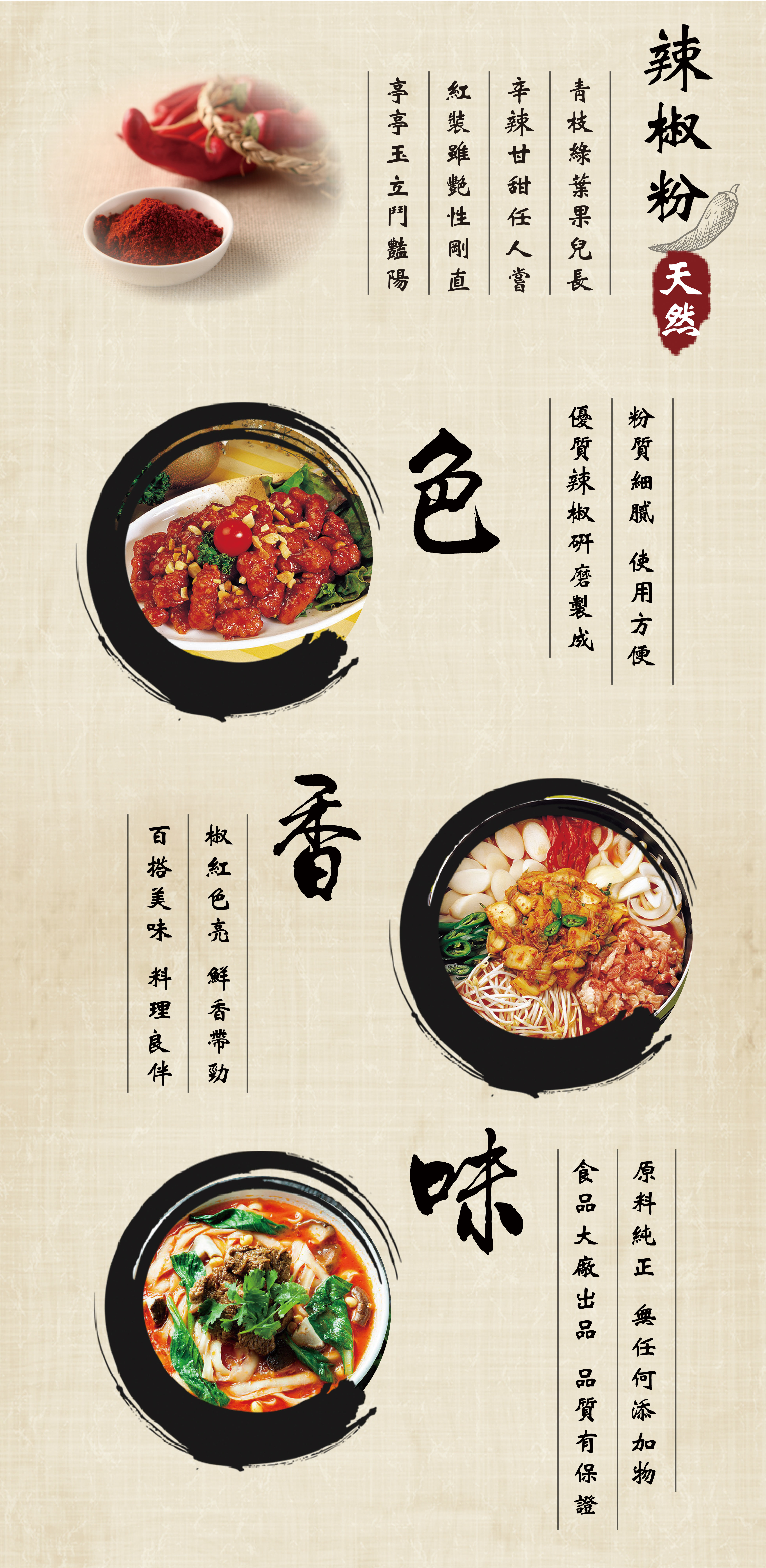 辣椒具有提味與強化食物味道的功用,也可做成各種調味料等香料配料