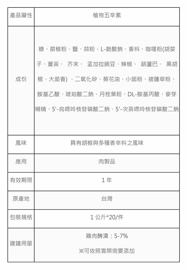 給予食品豐富之口感與香氣,可直接添加或與其他原料混合均勻後添加。