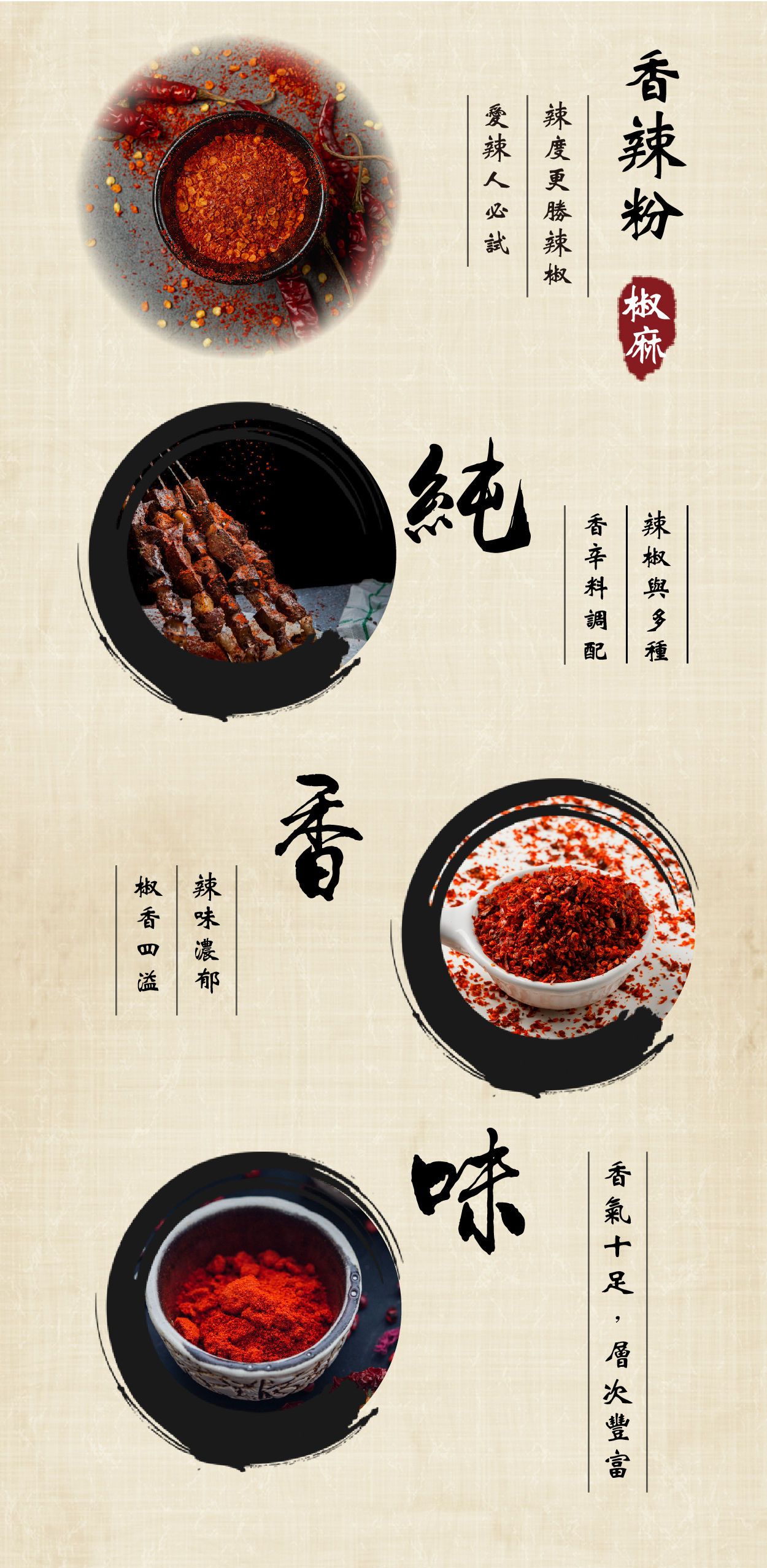不用再自己調配!久芳獨家配方,由多種香辛料和辣椒粉調配,因為多了很多種香辛料,使香辣粉的香氣和味道柔和又不失鋒利,百搭無敵。